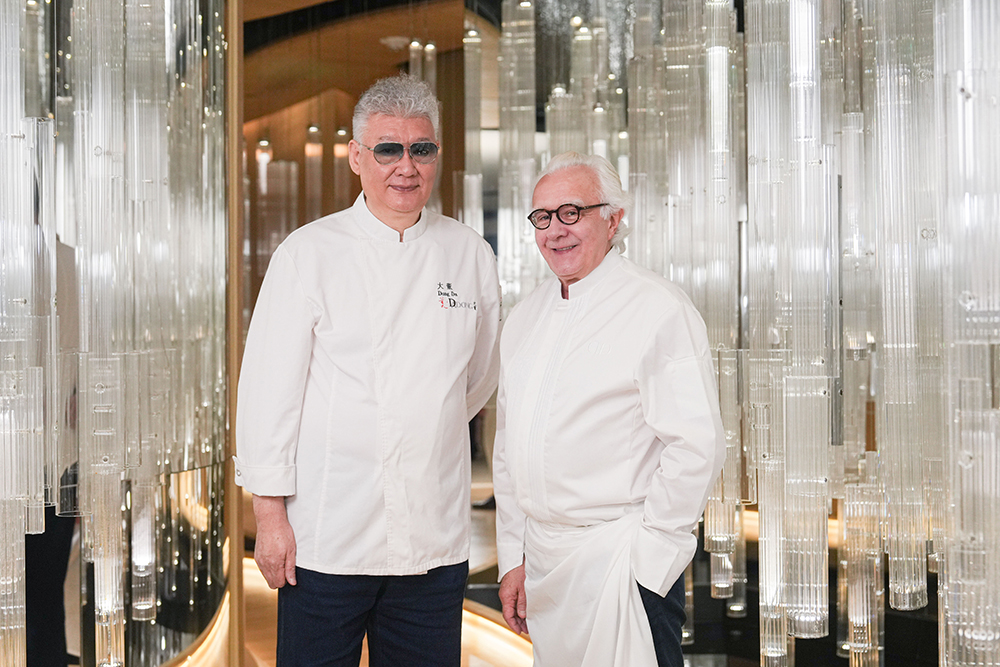 10月8日及9日,法国传奇巨匠及杜卡斯巴黎集团创始人艾伦·杜卡斯先生(Alain Ducasse)与大董中国意境菜创始人董振祥先生,于澳门新濠天地摩珀斯的米其林两星及黑珍珠一钻杜卡斯餐厅再次聚首,以一场别开生面的极致飨宴续写十三年前自巴黎开启的料理文化对话。两位厨坛传奇的重逢,不仅见证了时光沉淀后的烹饪哲思与艺术交汇,更让宾客在盛宴中领略东西方美学的深度共鸣。