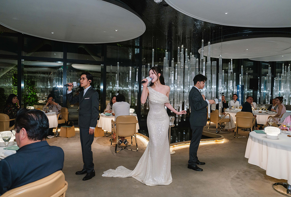 由已故建筑大师扎哈·哈迪德女爵士设计的摩珀斯,以其突破性的线条为空间注入独特的建筑诗意;杜卡斯餐厅晶莹璀璨的标志性水晶吊灯与臻选器物,更为这场盛宴提供无与伦比的舞台。晚宴现场除了有悠扬的大提琴演奏,还特別邀请了屡获殊荣的中国香港女高音歌唱家陈海兒带来动人演唱,让宾客在优雅的用餐氛围与精致料理的交织下,沉浸于一场跨越文化边界的多重感官体验。