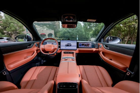 如果说外观是态度的宣告,那么座舱则是生活的延伸。星途ET5致力于将座舱打造成一个移动的、高品质的客厅。同级唯一的三联屏设计(10.25+15.6+12.3英寸),它不仅支持三指飞屏等便捷交互,更核心的价值在于为主副驾创造了各自精彩的独立空间,互不干扰,彼此尽兴。